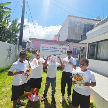 Founded in 2009, Angel Special School began with just 12 students and 4 volunteers in 2010 at Chemin Grenier. Today, the school supports up to 55 students with a dedicated team of 26 teaching and non-teaching staff, including a paramedical team.