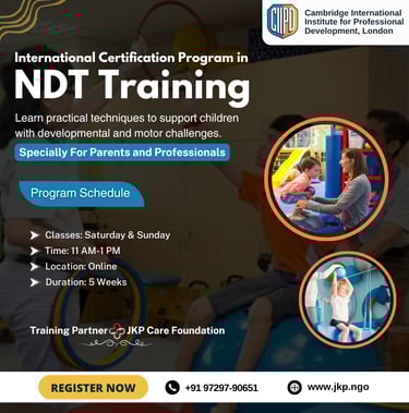This 5-week online certification program is thoughtfully designed to provide participants with a strong foundation in NDT principles, along with practical strategies required for effective assessment and intervention. The course focuses on enhancing clinical reasoning, improving hands-on understanding (through case-based learning), and enabling participants to apply NDT techniques confidently in real-life scenarios.